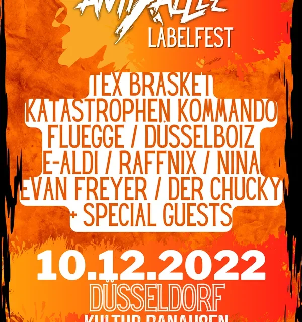 ENDLICH ist es soweit. Nachdem es letztes Jahr kurz vor knapp noch mal abgesagt werden musste, wird es dieses Jahr sicher stattfinden: Das lang ersehnte Anti-Allez-Labelfest. Da freue ich mich schon so lange drauf. An diesem Samstag stürmen wir alle die Kulturbanausen im Ratinger Hof in Düsseldorf und reißen die Hütte ab. Ab 16 Uhr geht es los, die Tickets kosten 10 Euro im Vorverkauf und 13 Euro an der Abendkasse. Los geht es schon um 16 Uhr!